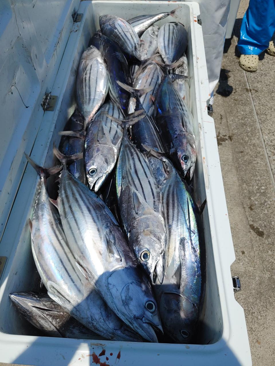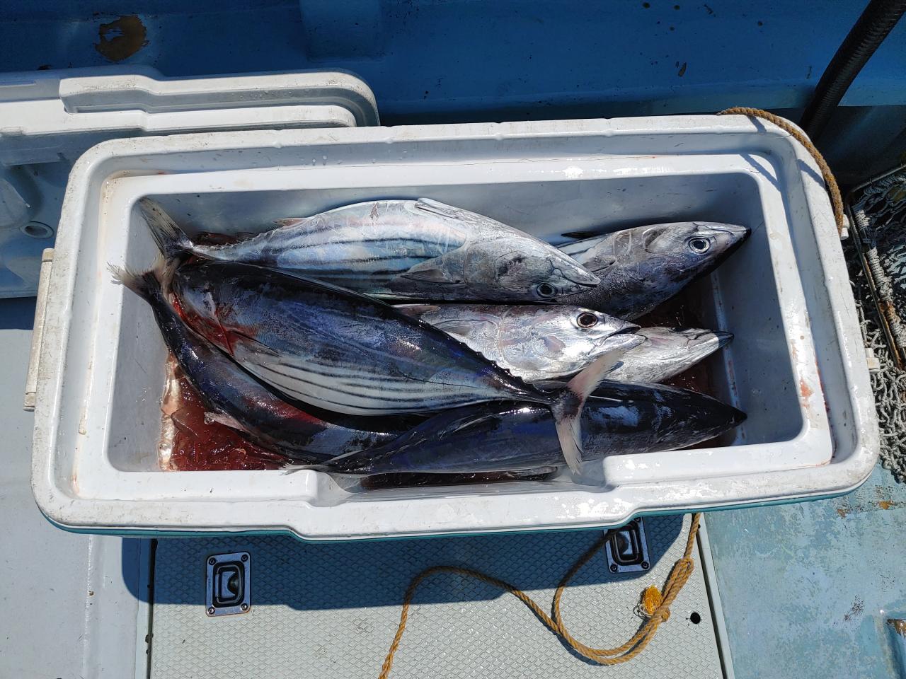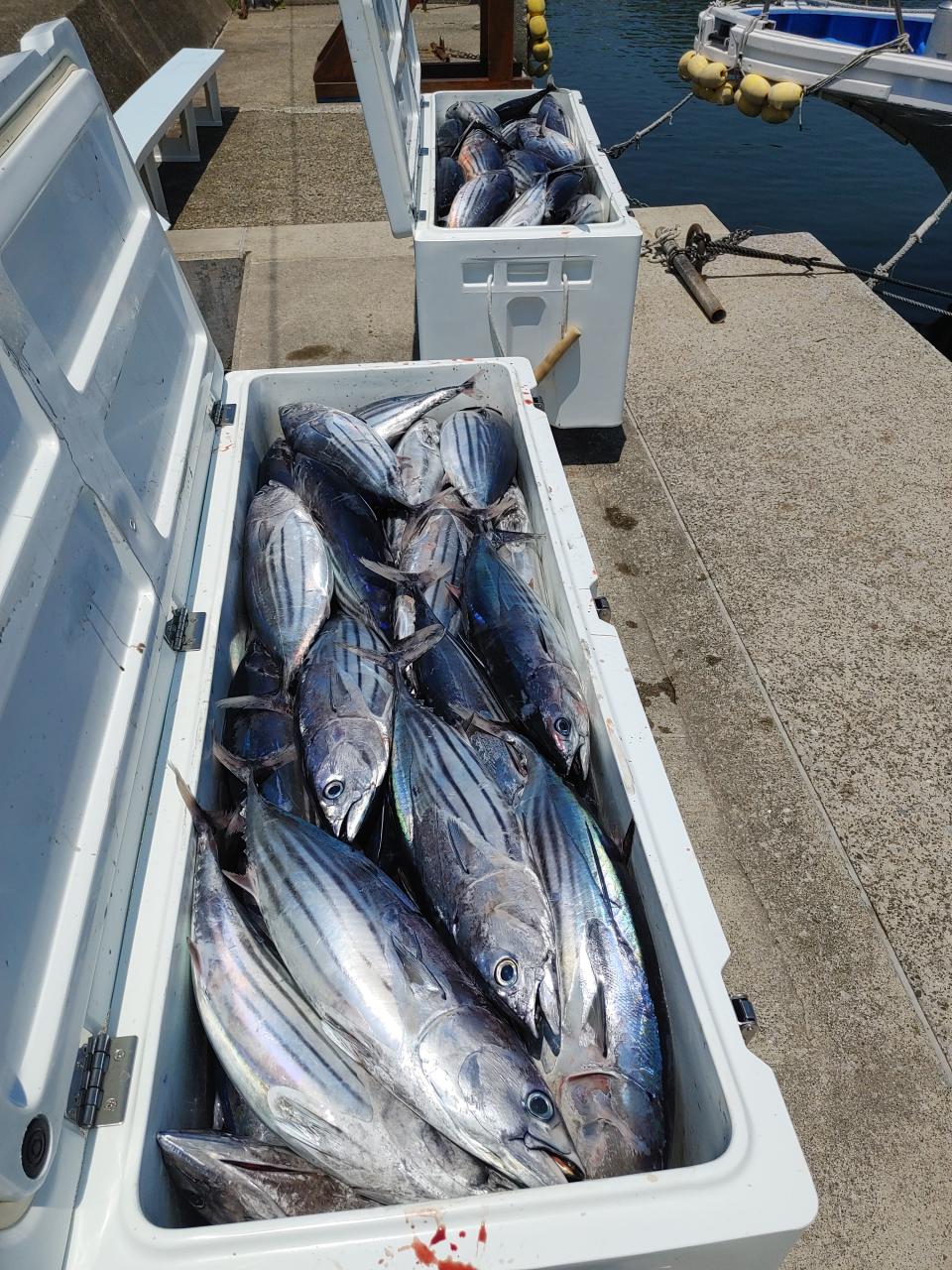 朝イチから良い群れ見付かりカツオの2〜3キロをクーラー満タン。1流しで終了。バリ食いでした。本日は乗船ありがとうございました。