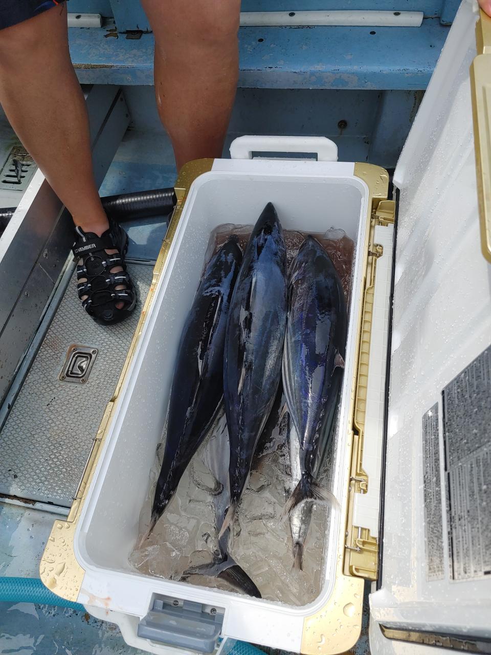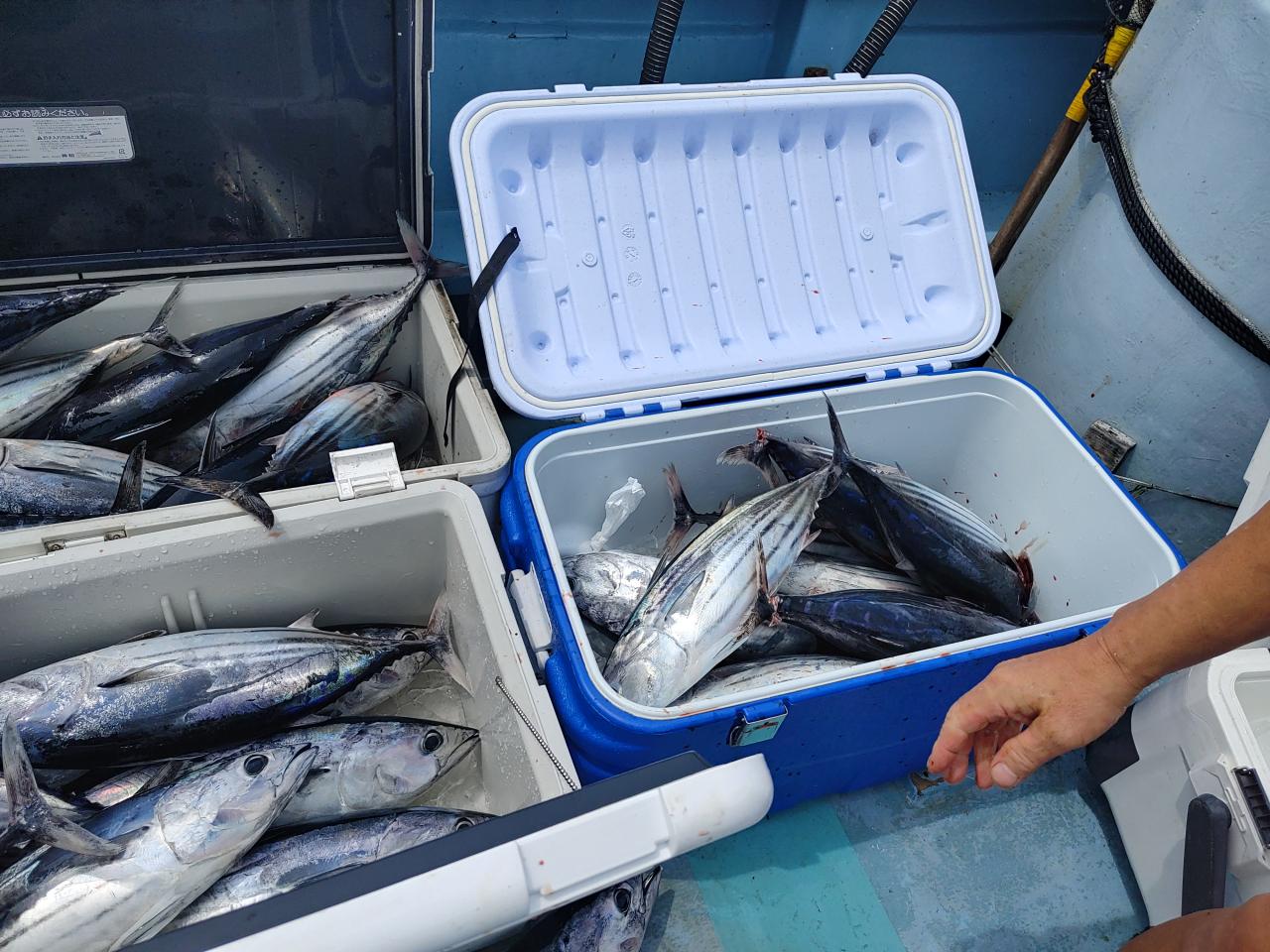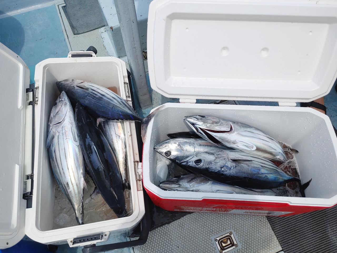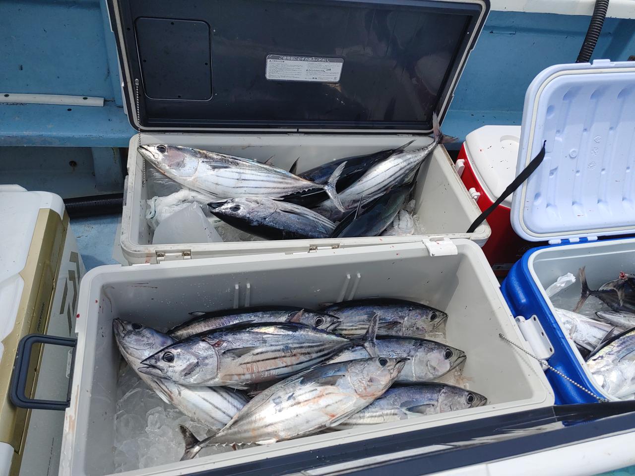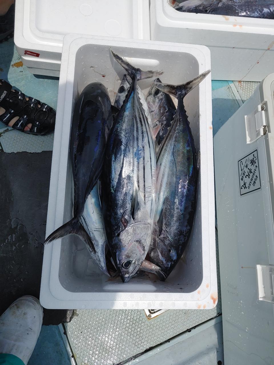朝イチから良い群れ見付かりカツオの3キロ前後をクーラー満タン。8時半早上がり!1流しで終了。バリ食いでした。本日は乗船ありがとうございました。